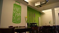 Das Henkelmann Deluxe ist eine charmante Suppen- und Salatbar in den Rheinhöfen im Reisholzer Hafen. Gerne verwöhnen wir euch mit wechselnden frischen Suppen, Salaten, Panini sowie hausgemachten Desserts und Nussecken. Außerdem gibt es ein wechselndes Mittagsgericht und eine separate Karte für Caterings, die ihr unter "Speisen und Getränke" findet.